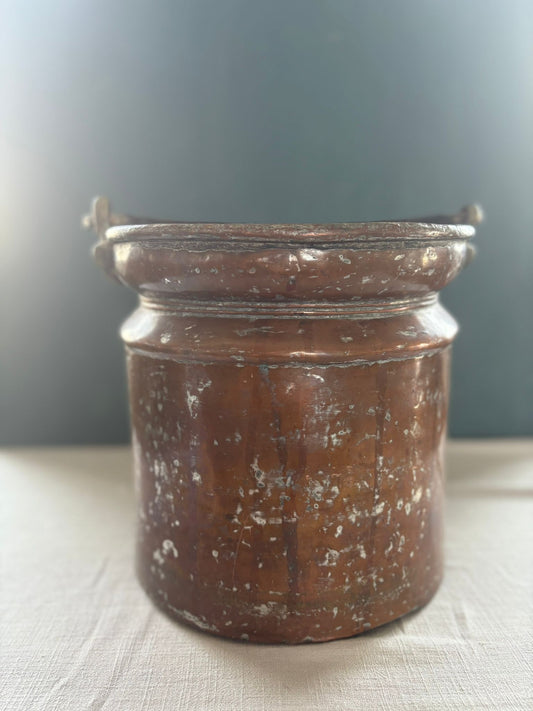 Antique French Copper Storage Pot with Decorative Brass Mounts