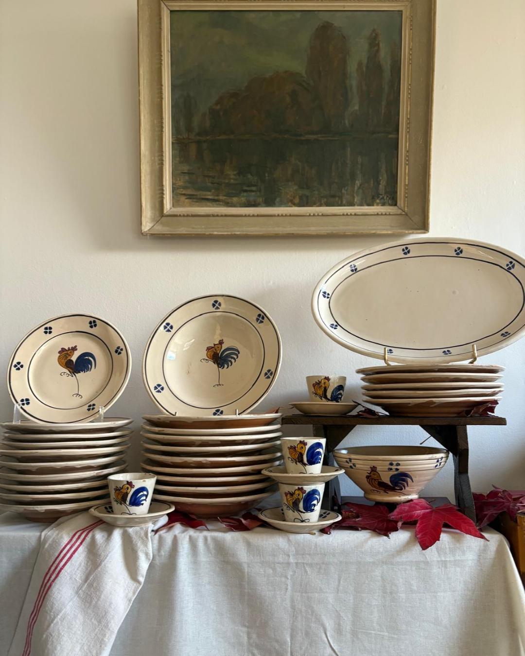 Italian Terracotta Rooster Service Pieces