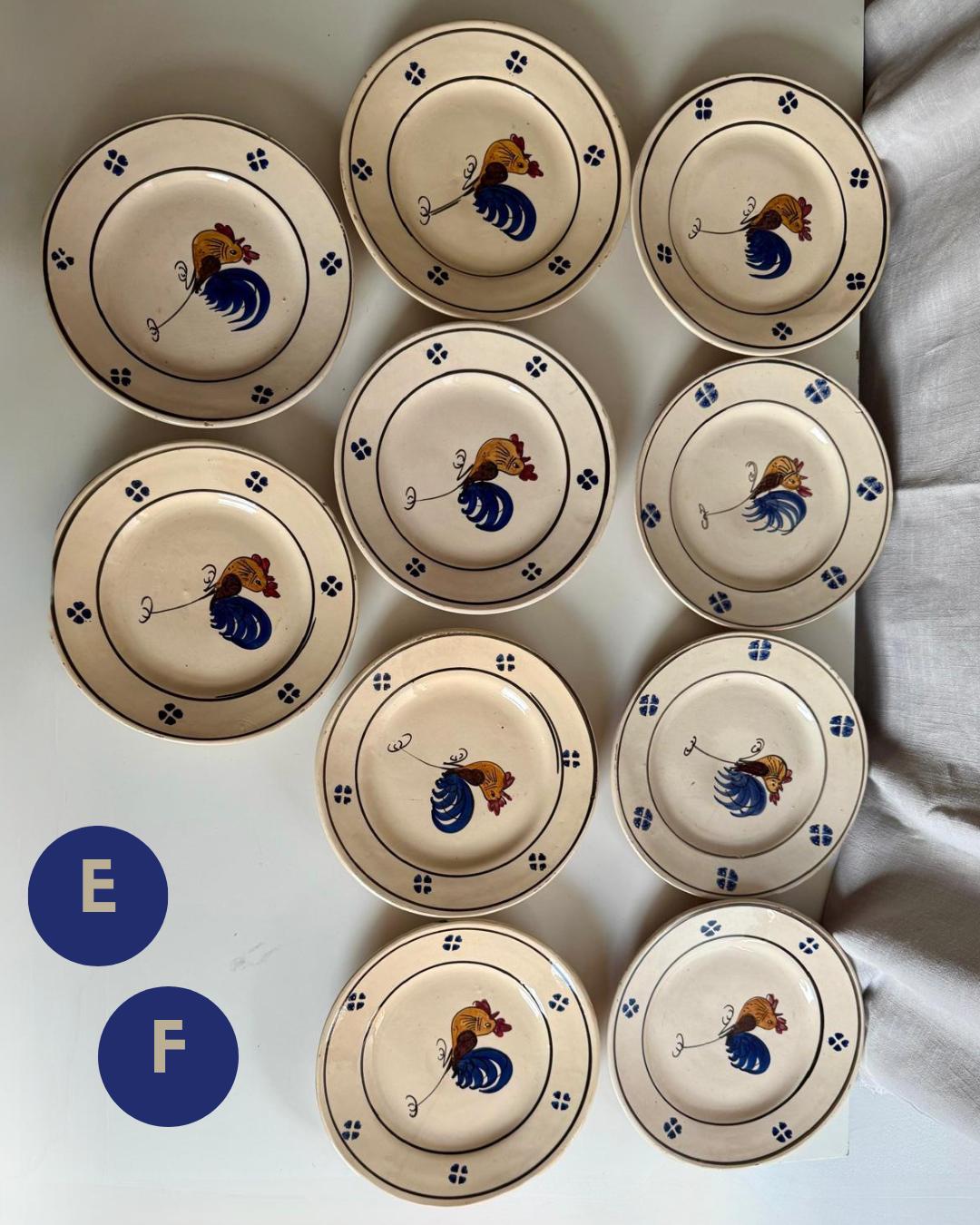 E/F 10 Rooster Plates 7¾”Ø- $160